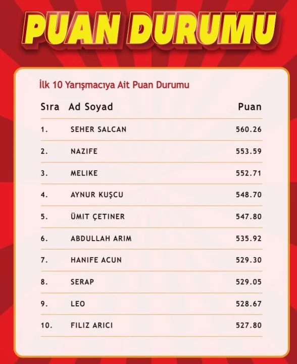 26 TEMMUZ 2024 TARİHLİ ÇÖZEN KAZANIR’DA İLK 10’A GİREN YARIŞMACILARIN İSİMLERİ