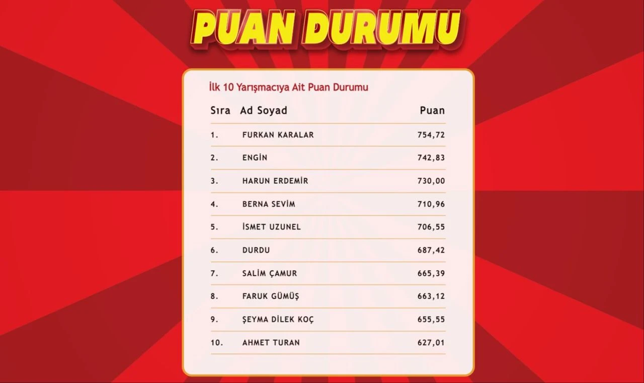 3 EKİM 2024 TARİHLİ ÇÖZEN KAZANIR’DA İLK 10’A GİREN YARIŞMACILARIN İSİMLERİ