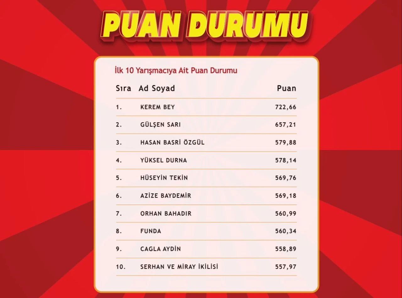 6 KASIM 2024 TARİHLİ ÇÖZEN KAZANIR’DA İLK 10’A GİREN YARIŞMACILARIN İSİMLERİ