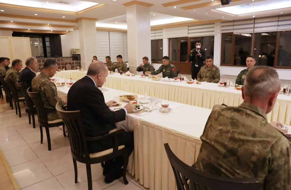 Mamak 4. Kolordu Komutanlığındaki iftara Cumhurbaşkanı Erdoğan’ın yanı sıra Cumhurbaşkanı Yardımcısı Fuat Oktay, Milli Savunma Bakanı Hulusi Akar, Genelkurmay Başkanı Orgeneral Yaşar Güler ve kuvvet komutanlarının yanı sıra farklı rütbelerdeki askerler katıldı.