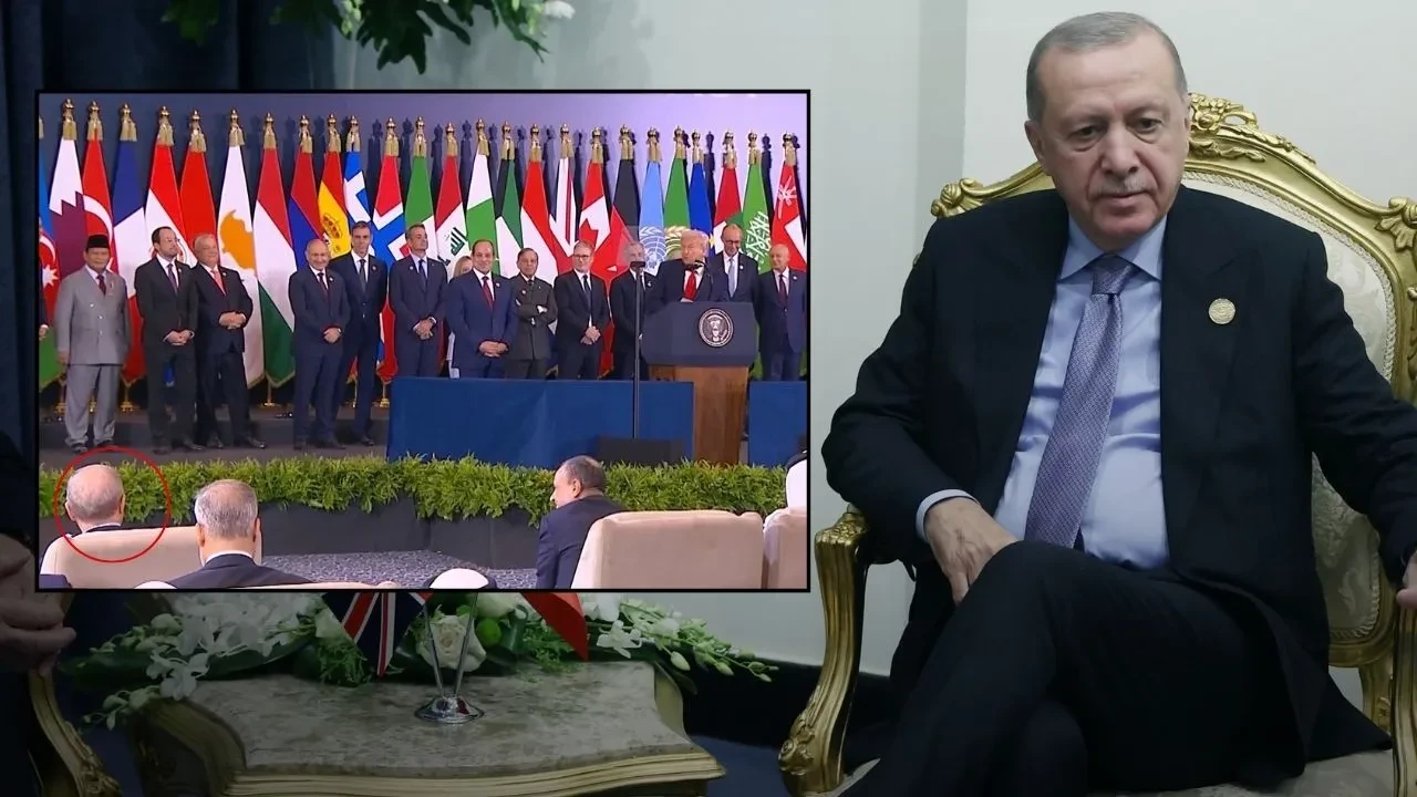 Dünya liderlerini Mısır'ın Şarm el-Şeyh kentinde bir araya getiren zirvede ABD Başkanı Donald Trump konuşma yaptı. Kürsüde arkasında diğer ülkelerin yöneticileriyle poz veren Trump'ın konuşması sırasında İtalya Başbakanı Giorgia Meloni başta olmak üzere sıkılmış halleri dikkat çekti.