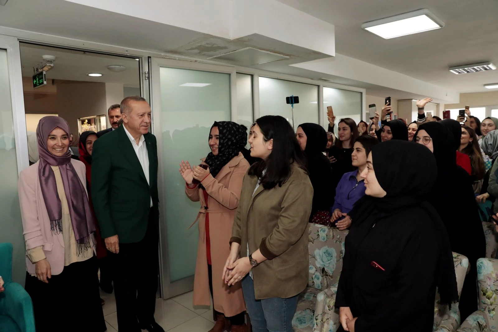 Cumhurbaşkanı Recep Tayyip Erdoğan, akşam saatlerinden Türkiye Gençlik ve Eğitime Hizmet Vakfı (TÜRGEV) Şişli Mihri Hatun Yükseköğretim Kız Yurdunu ziyaret etti. Cumhurbaşkanı Erdoğan, burada bir süre kız yurdunda kalan öğrencilerle sohbet etti. Öğrencilerle sohbetin ardından hatıra fotoğrafı çektiren Cumhurbaşkanı Erdoğan, daha sonra ise Haliç Kongre Merkezine geçti.