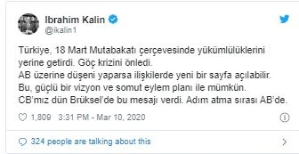 Kalın, Twitter hesabı üzerinden yaptığı açıklamada şu ifadeleri kullandı: