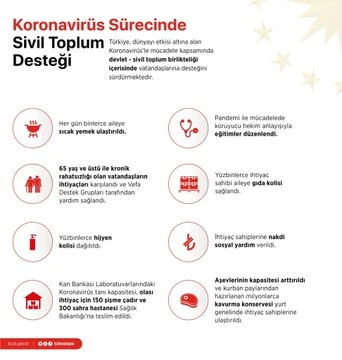 Türkiye'nin dünyayı etkisi altına alan koronavirüsle mücadele kapsamında devlet-sivil toplum birlikteliği içerisinde vatandaşlarına desteğini sürdürdüğü vurgulanan bir diğer paylaşımda ise şunlar kaydedildi: