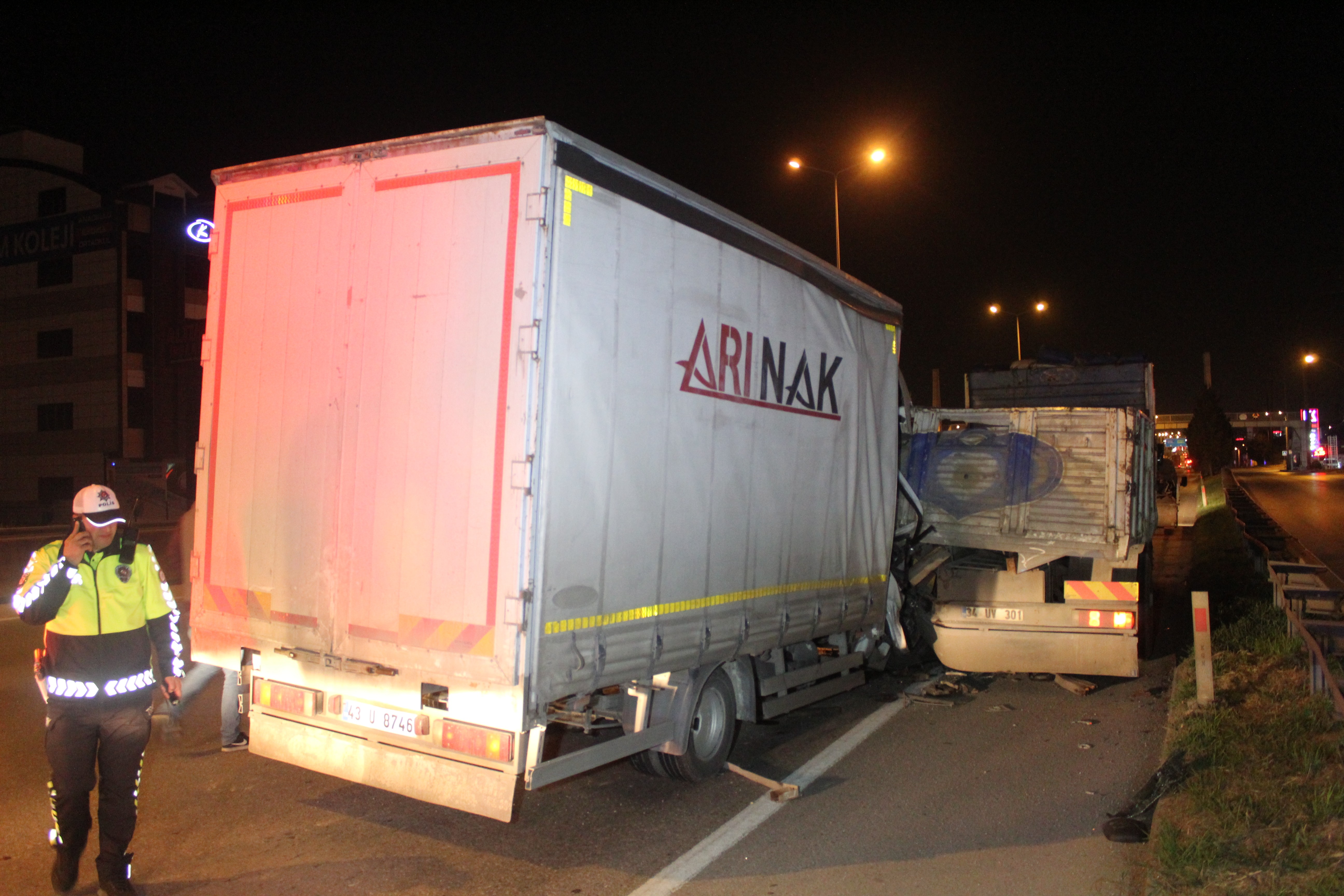 Kaza, Kocaeli’nin Derince ilçesi D100 Karayolu İbnisina Mahallesi’nde meydana geldi. Edinilen bilgilere göre Muzaffer Ş. idaresindeki 34 UV 301 plakalı kamyon İstanbul istikametinde seyir halindeyken belirlenemeyen bir sebepten dolayı arızalandı. Kamyonun arızalandığını fark eden Muzaffer Ş., aracı emniyet şeridinde durdurdu. Muzaffer Ş. aracından inerek arıza sebebini tespit etmek isterken, aynı istikametten gelen Emre A. yönetimindeki 43 U 8746 kamyonet, kamyona arkadan çarptı. Kazada Emre A. kamyonette sıkışırken, Muzaffer Ş. yaralı kurtuldu.