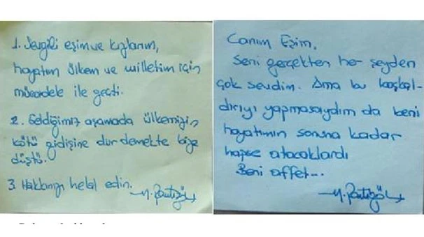 'Yurtta Sulh Konseyi' bildirisinde imzası bulunan Genelkurmay Personel Daire Başkanı Tuğgeneral Mehmet Partigöç'ün eşine yazdığı notlarda iddianamede yer aldı. Partigöç'ün eşine, "Memleketin gidişatı kötü, bunu yapmak bize düştü. Eğer biz yapmasaydık zaten ömür boyu hapis yatacaktık" diye yazdığı belirtildi.