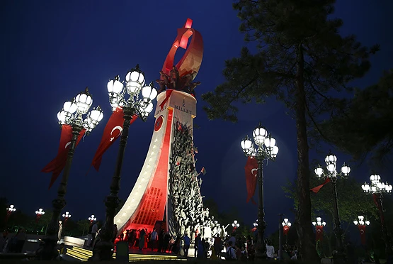 FETÖ'nün 15 Temmuz'daki darbe girişiminin birinci yılında, "15 Temmuz Demokrasi ve Milli Birlik Günü" anma etkinlikleri çerçevesinde, Taksim Meydanı'nda vatandaşlar 'demokrasi nöbeti' tutmaya devam etti.