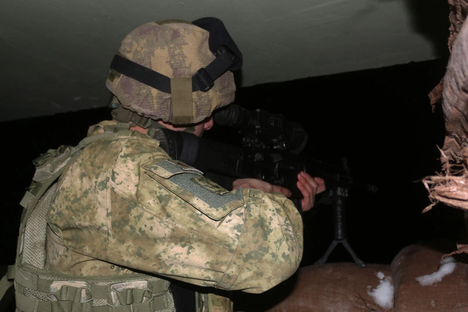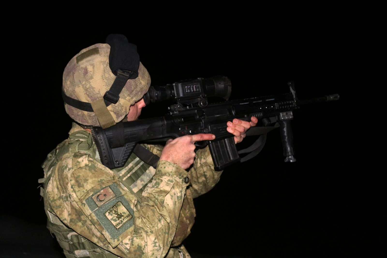 Teröristle mücadelede kararlılık vurgusu yapan Mehmetçik, 2020’ye elleri tetikte girdi. Hakkari’nin zorlu kış şartlarında görev yapmaya devam eden askerler, yeni yıl nedeniyle verdikleri mesajla dosta güven düşmana korku verdi. 2019’un son ve 2020 yılının ilk saatlerinde etkili olan eksi 15 derecede görevlerinin başında olan Mehmetçik, kanlarının son damlasına kadar bölgeden ayrılmayacaklarını dile getirdi.