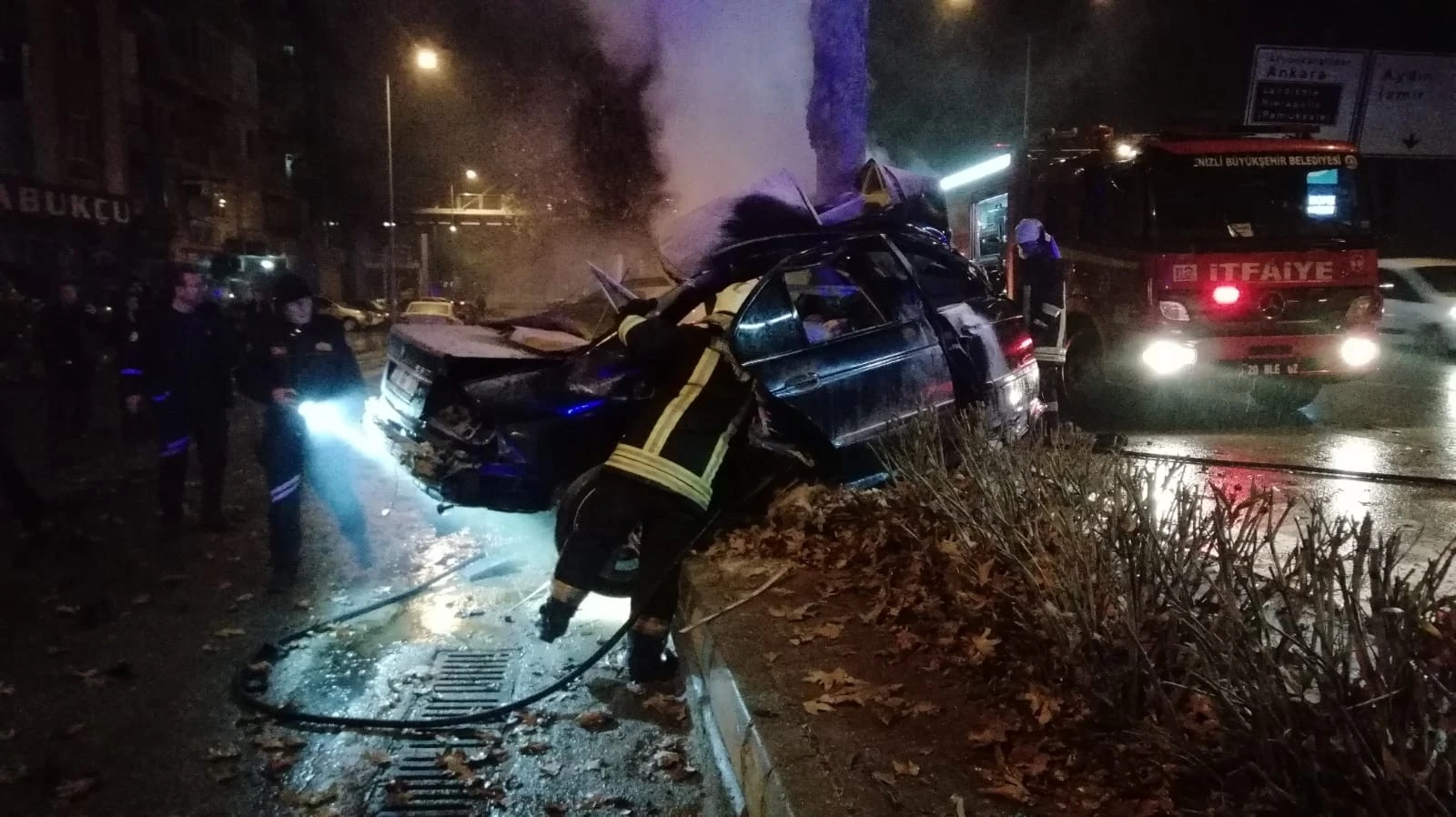 Ardından hızını alamayan otomobil bir başka ağaca çarparak durabildi. Çarpmanın etkisi ile alev alan otomobili olay yerinde devriye geze trafik polisleri fark ederek araçlarındaki yangın tüpüyle müdahale edip söndürdü. Ardından trafik polisleri itfaiye ve 112 acil servisi arayarak yardım istedi.