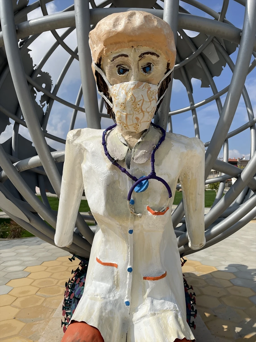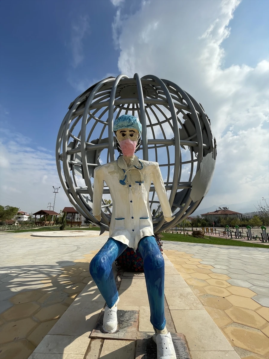 Belediye tarafından Bahçelievler Mahallesi'nde yeni tip koronavirüs (Kovid-19) salgınında görev yapan sağlık personelini temsil eden heykellerin de bulunduğu bir park inşa edildi.