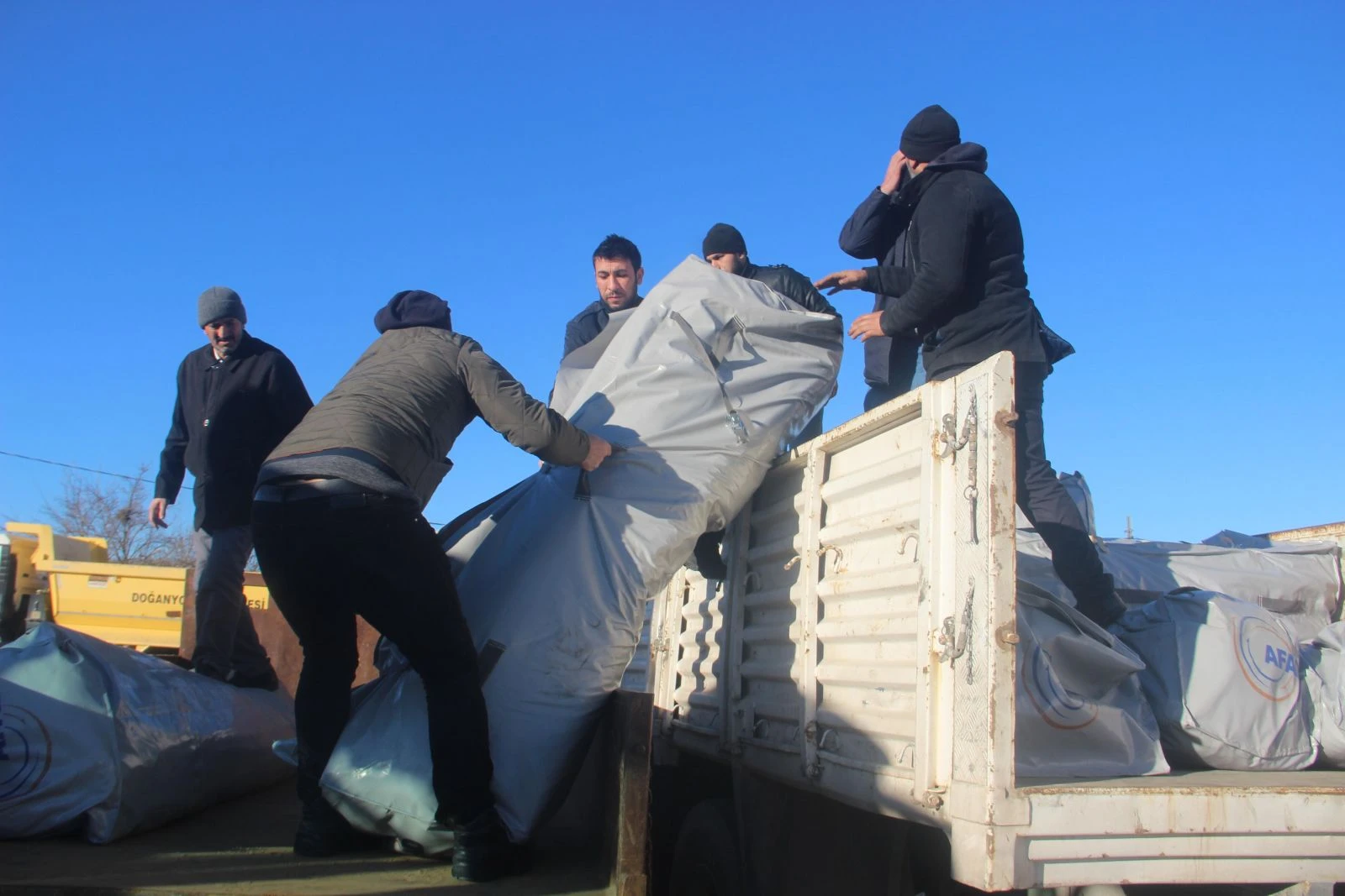Malatya Büyükşehir Belediyesinin araçlarıyla Doğanyol ilçesine getirilen çadırlar, vatandaşlara dağıtıldı.