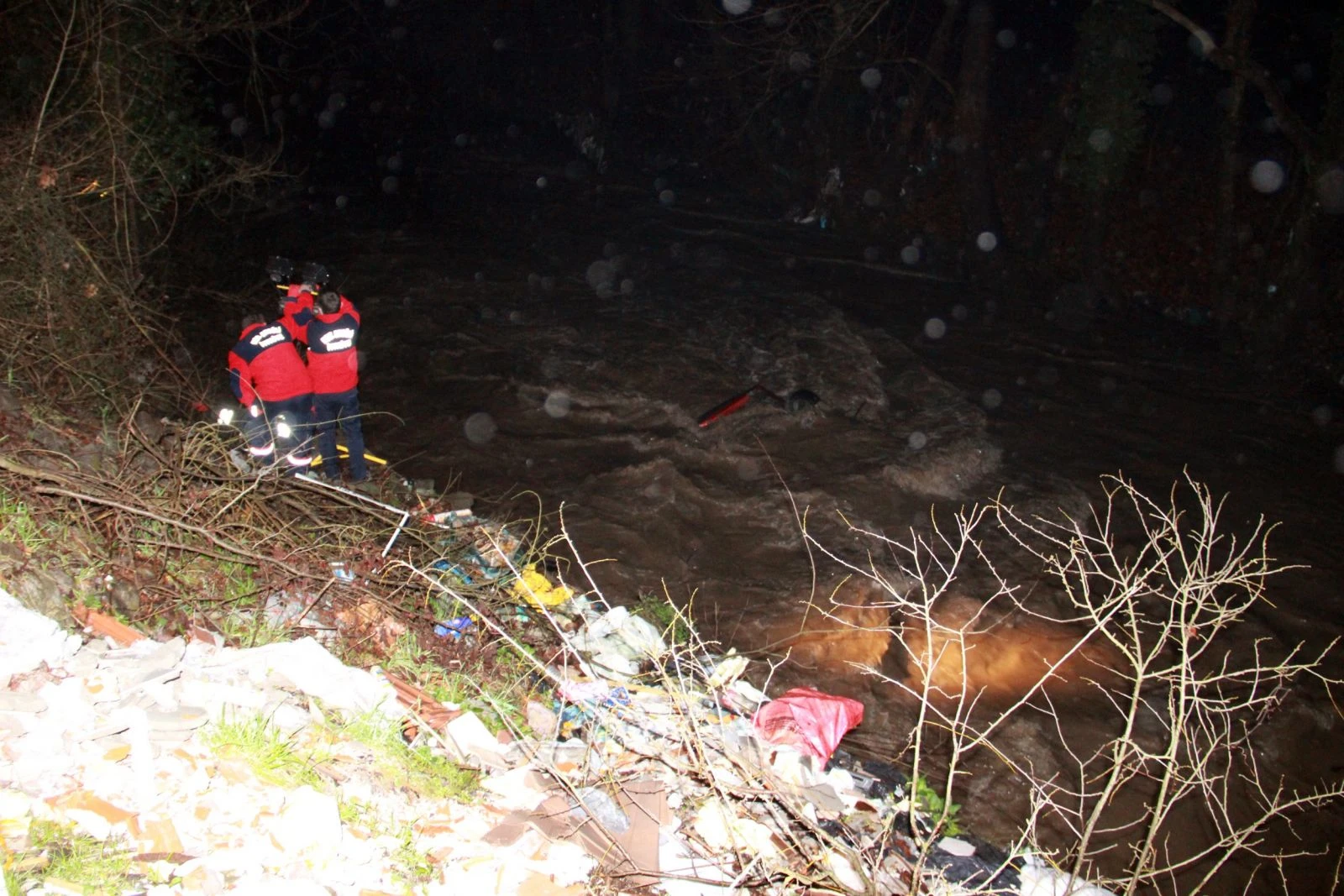 İtfaiye ekipleri debisi yüksek olan suyun ortasında kalan otomobile ulaşmak için uzun süre çaba göstermesine rağmen bir türlü başarılı olamadı. İplerle otomobile ulaşılamayacağı anlaşılınca olay yerine vinç çağırıldı.