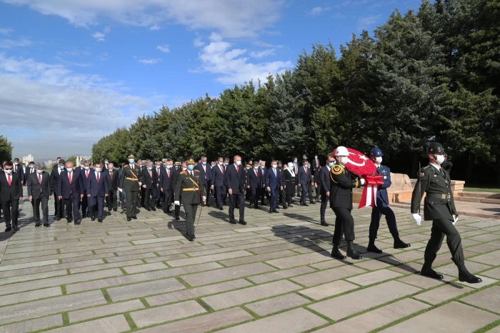 Cumhurbaşkanı Recep Tayyip Erdoğan başkanlığındaki devlet erkanı, Cumhuriyet'in ilanının 97'nci yıldönümü dolayısıyla Anıtkabir'i ziyaret etti.