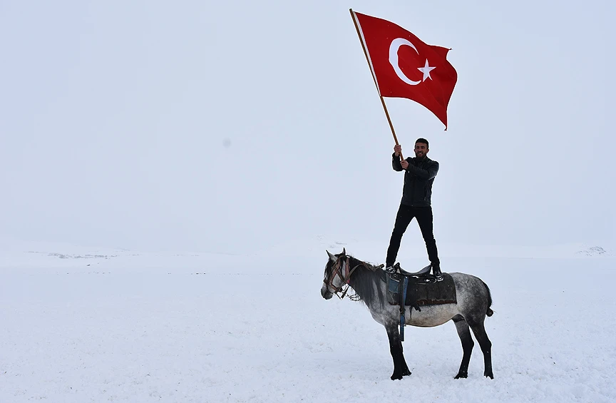 Ankara'dan "Doğu Ekspresi" ile Kars'a gelen turistler, Cıbıltepe Kayak Merkezi, Çıldır Gölü, Ani Örenyeri'ni gezdikten sonra yöre sakinlerince kar üstünde oynanan ata sporu atlı cirite yoğun ilgi gösteriyor.