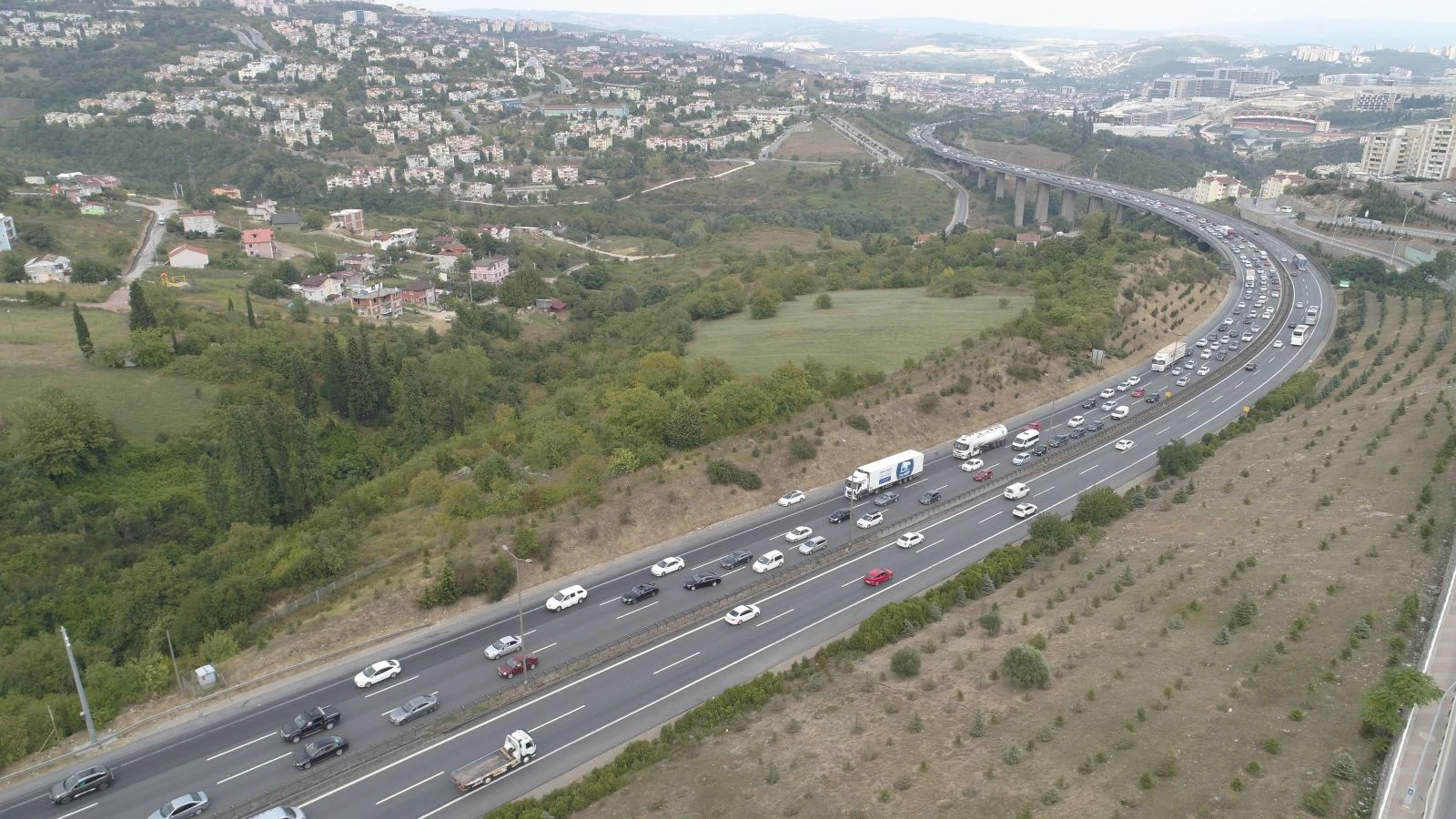 Öte yandan, TEM Otoyolunda durma noktasına gelen trafik ise havadan görüntülendi.