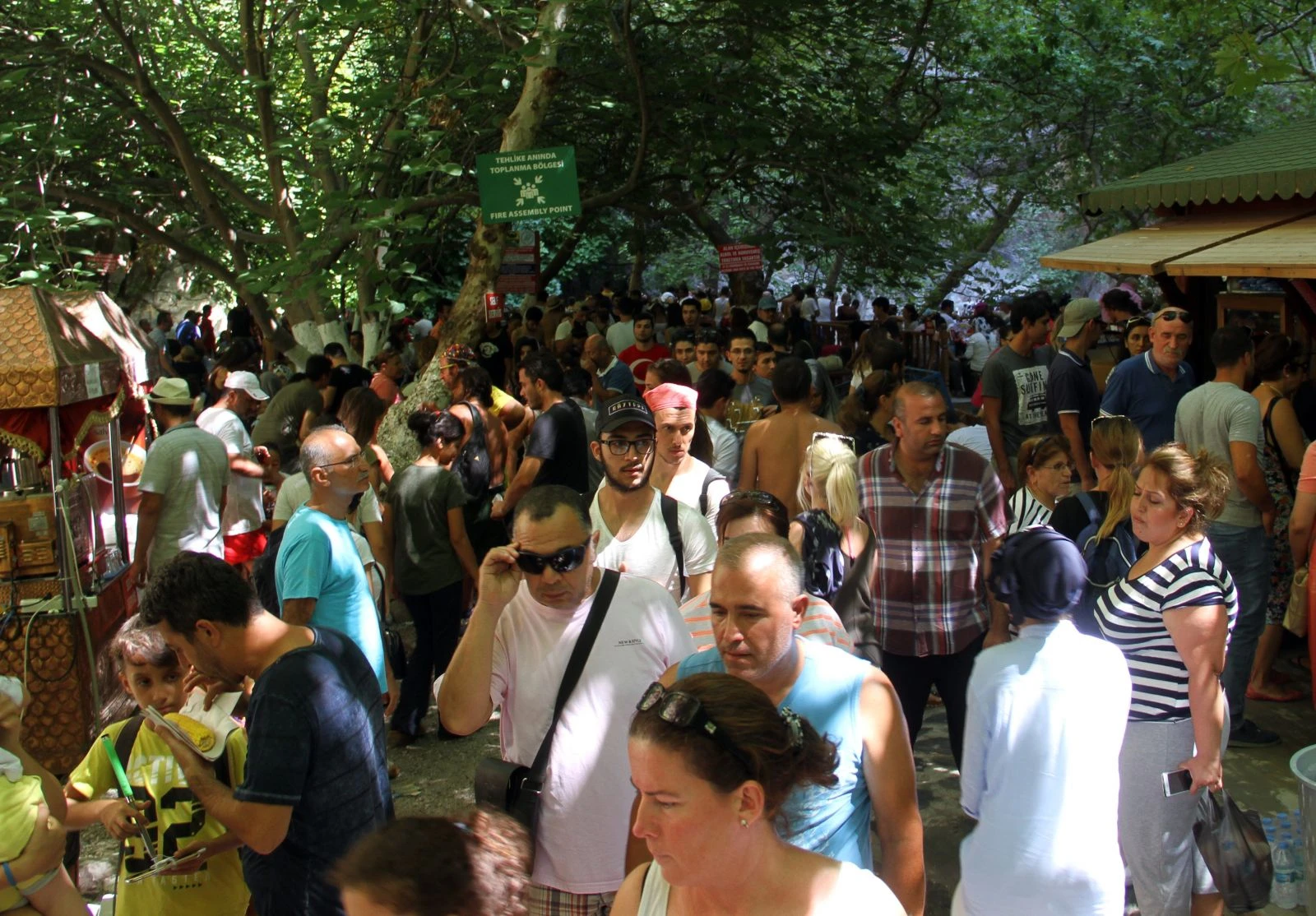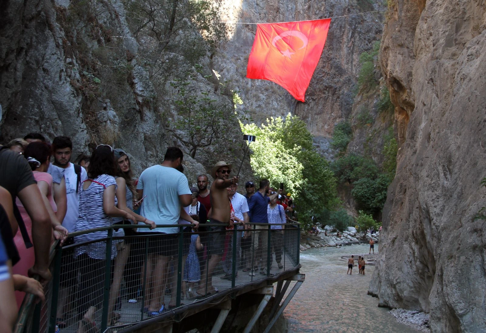 Hava sıcaklığının 34 derece ölçüldüğü Fethiye ve Seydikemer'de serinlemek isteyen tatilciler, Muğla- Antalya sınırındaki 18 kilometrelik Saklıkent Kanyonu'na akın etti. Yoğunluk nedeniyle Saklıkent yolunda uzun araç kuyruğu oluşurken, kanyonu ziyarete gelen tatilciler, araç park edecek yer bulmakta zorlandı. Yoğunluk kanyon girişindeki restoran ve gişelerde de kendini gösterdi. Güçlükle kanyona girebilen tatilciler, ahşap köprüde yürümekte zorlandı.