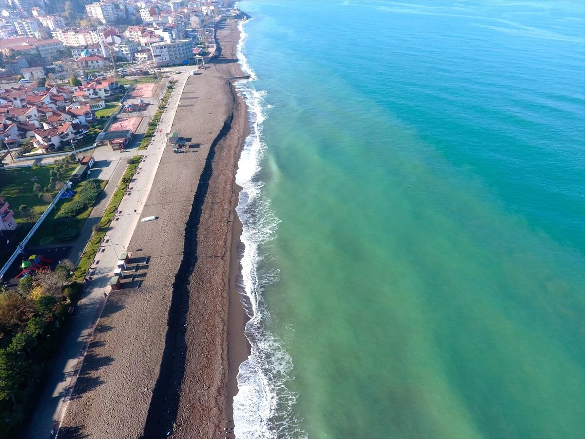 Düzce'nin Akçakoca ilçesinde, sahildeki kumun kıyıya 3 metre çekilmesi ilginç görüntü oluşturdu.
