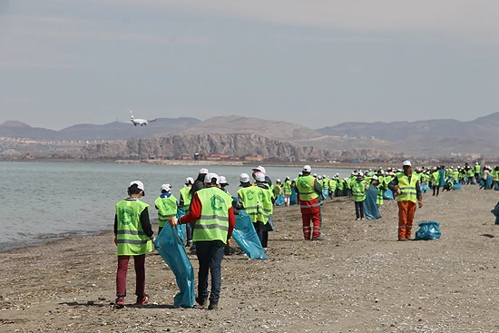 Van'da, Edremit Kaymakamlığı ve Belediye öncülüğünde gerçekleştirilen etkinlikte öğrenciler, ilçe merkezi ile Van Gölü kıyısında çöp topladı.