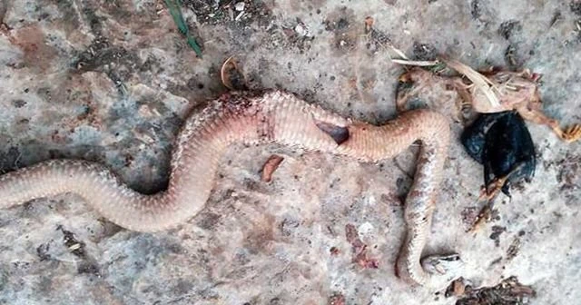 3 haftada 60’a yakın yetişkin civcivinin ortadan kaybolduğunu belirten Mehmet Üstül, "Ben 3 haftadır bir tilkinin bahçeme dadandığından şüpheleniyordum ancak bacanağım civcivleri yılanın yuttuğunu fark ederek bana söyledi. Refleksle yılana vurdum. Şişkin olan karnını açtığımızda 2 yetişkin civcivimiz çıktı. Yılanın, zehirli olduğu bilinen engerek olduğunu sonradan öğrendik" dedi.