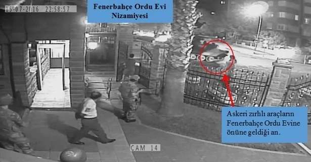 Orduevinin önüne 22.58'de varan darbeci askerler ve araçların orduevinin girişine konuşlanarak silahlı bir şekilde dışarıya çıkıp tertibat aldıkları belirtilen iddianamede, Fenerbahçe Orduevi'nde müdür olarak görev yapan Albay Cem Gültekin'in darbeci askerlerle müzakere yaptığı ve ikna etmeye çalıştığı belirtildi. Herhangi bir olay yaşanmadan 04.00'a kadar bekleyen askerlerin, ikna edildikten sonra silah ve mühimatlarını geldikleri araçların içine bıraktıkları, orduevinde görevli rütbeli bazı askerlerin darbeci askerlere hitaben konuşma yaptıktan sonra da orduevinin içine girdikleri, araçların ise dışarıda kaldığı kaydedildi. İddianamede darbeci askerilerin orduevi önünde silahlı bir şekilde dizilişleri ve orduevindeki rütbelilerin ikna çabalarını gösteren fotoğraflara da yer verildi.
