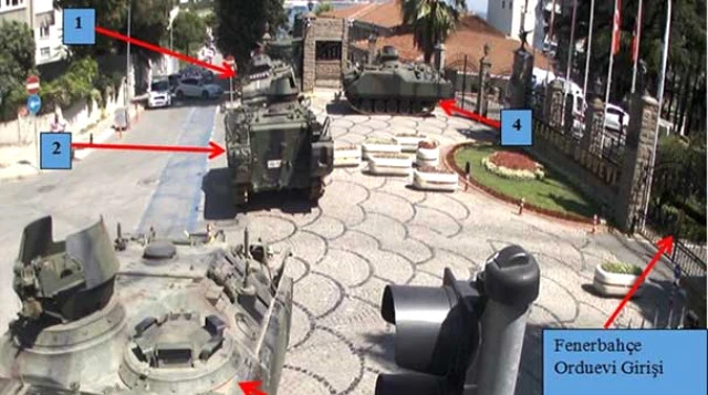 İddianamede, geldikleri araçlar üzerinde yapılan incelemede darbecilerin Fenerbahçe Orduevi'ne; 4 adet uçaksavar silahı, 6 adet MG-3 ağır makineli tüfek, ile 30 adet de piyade tüfeği ve bu silahlara ait 4 bin 500 adet fişekle gittikleri ifade edildi.