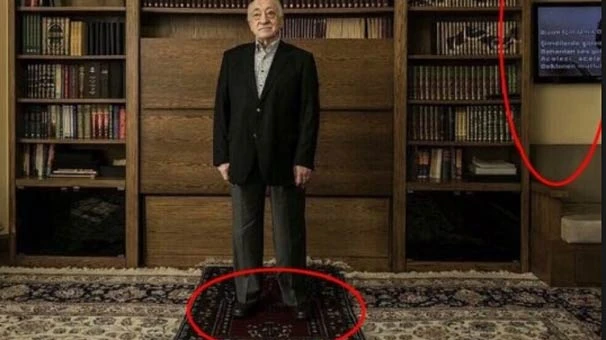 İstihbarat birimlerine göre, FETÖ elebaşısı Gülen, İslami değerleri hiçe sayıp seccadeye ayakkabılarıyla basarak ABD ve Batı’ya “Radikal değiliz, kutsiyetlerimiz yok, şekilsel hususları dert etmiyoruz. Yükselen Radikalizme karşı bizi kullanın” mesajını iletti. Fotoğrafta arkada kütüphane olmasının da “İlimliyiz, önceliğimiz ilim” mesajı vermeyi amaçladığı belirtildi.