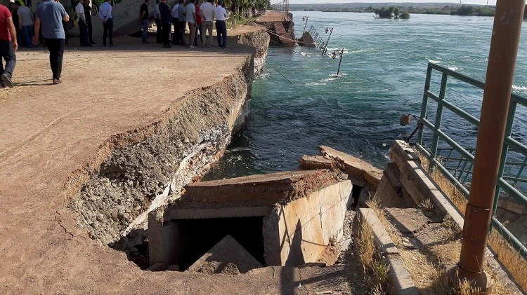 Şanlıurfa'nın Birecik ilçesinde, Fırat Nehri'ndeki baraj kapaklarının açılması ve suyun yükselmesi sonucu taşkın önleme duvarı ve yürüyüş yolu çöktü.