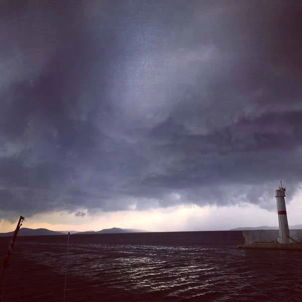 Bugün öğleden sonra bir anda bastıran fırtına ve yağmur Marmara ilçesinde kurulan pazardaki tezgahların devrilmesine neden oldu. Denize giren vatandaşlar kapalı alanlara girmek zorunda kaldı.