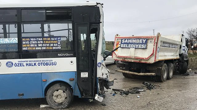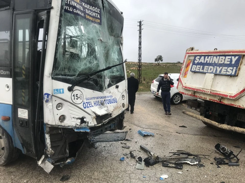 Hüseyin Postallı'nın kullandığı 27 H 0090 27 plakalı özel halk otobüsü, Şahinbey ilçesi Taşlıca Mahallesi'nde Nurettin Balcı idaresindeki Şahinbey Belediyesine ait hafriyat yüklü 27 BOP 60 plakalı kamyonla çarpıştı.