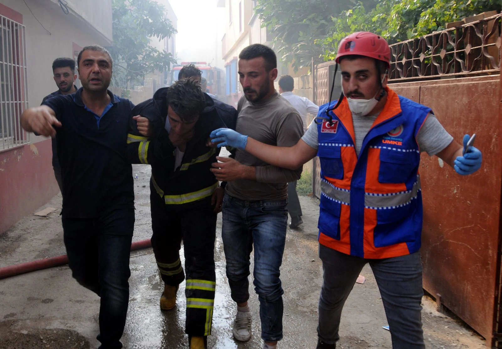 “16.04’te bize ihbar geliyor. Güçlü bir şekilde olay yerine hemen intikal ediyoruz, fakat içeride bu depo yangını pamuk, elyaf gibi ürünler var. Söndürüldüğünde tekrar alev alan ürünler bunlar. Organize itfaiyesi, büyükşehir itfaiyesi, su takviyesi aldığımız yerler de var. Yaklaşık 30 araç ve 100 personelle 4-5 saattir müdahalemiz devam ediyor. Şuna seviniyoruz, resmi olarak ulaştığımız can kaybı veya başka bir şey yok. Buradaki evlere sıçrama söz konusu değil. Fabrikanın diğer imalat yerine ulaşması söz konusu değil. Yangın bir süre devam edecek gibi görünüyor. Yoğun şekilde mücadelemiz devam ediyor. Yangına müdahalemiz kontrollü şekilde devam edecek. 4 tane itfaiye erimiz dumandan etkilendi, arkadaşlarımızın tedavisi hastanelerde devam ediyor.”