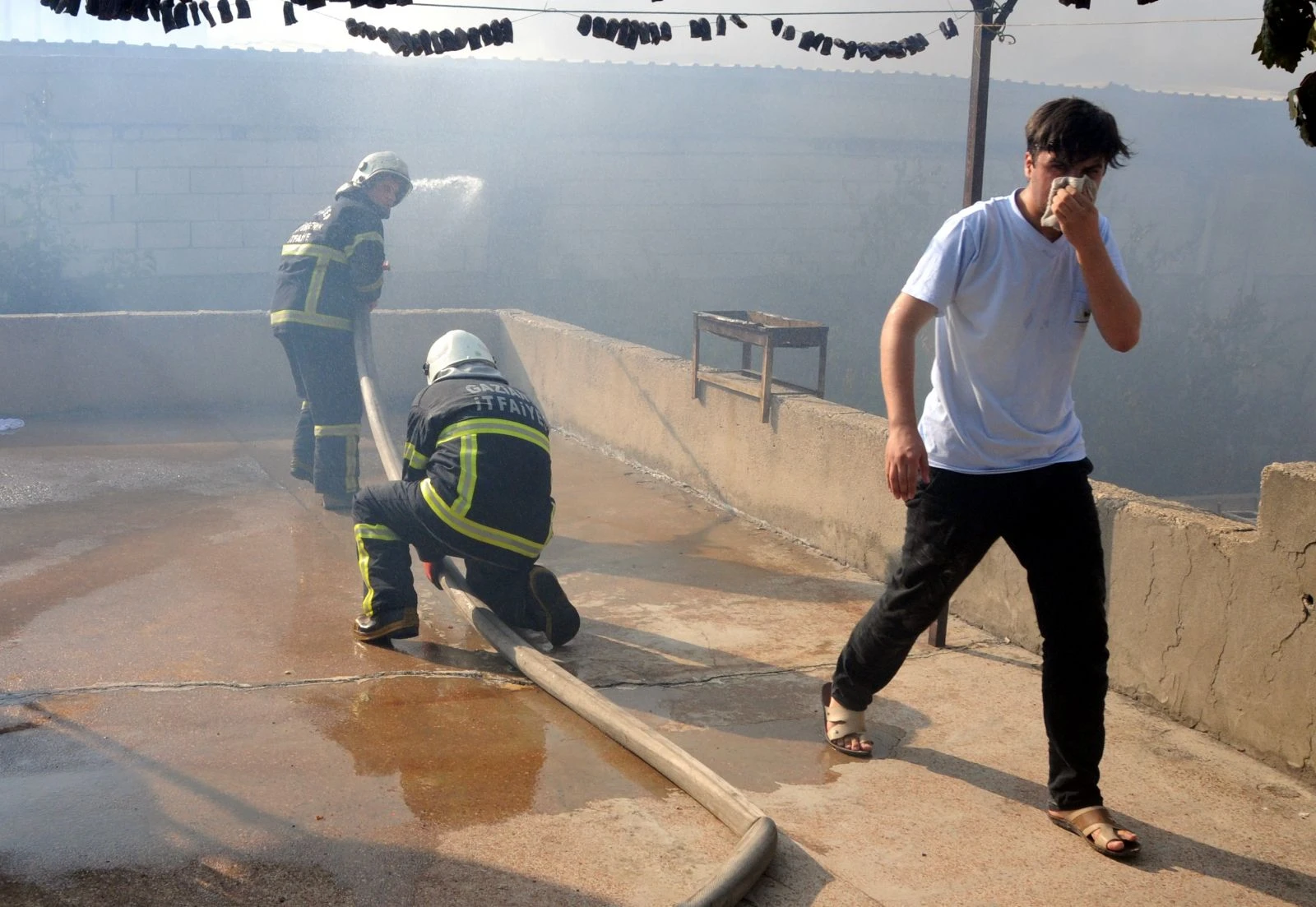 Mahalle sakinleri ise aynı depoda son 5 yılda 2 defa yangın çıktığını belirterek, tepki gösterdi. Vatandaşların da katıldığı yangın söndürme çalışmaları devam ederken, mahalleyi kaplayan duman nedeniyle vatandaşlara maske dağıtıldı. Fabrikanın deposunu saran alevleri kontrol altına almaya çalışan itfaiye ekipleri, yangının çevredeki evlere yayılmaması için büyük çaba gösteriyor.