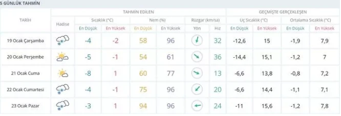 MGM'nin son uyarısına göre Gaziantep'te bugün hava eksi 2 derece olacak. İl genelinde kar yağışı tüm gün boyunca aralıklarla devam edecek. Meteoroloji'nin yayınladığı son rapora göre; Güneydoğu Anadolu Bölgesi çok bulutlu, bölge genelinin kar yağışlı geçeceği tahmin ediliyor. Yağışların Siirt, Batman, Şanlıurfa, Diyarbakır ve Mardin çevrelerinde kuvvetli ve yoğun kar şeklinde olması bekleniyor. Rüzgarın, kuzeybatısında kuzeyli, doğusunda güneyli yönlerden kuvvetli ve kısa süreli fırtına (50-70 km/sa) şeklinde esmesi bekleniyor. Bölge genelinde buzlanma ve don olayı ile birlikte pus ve yer yer sis bekleniyor.
