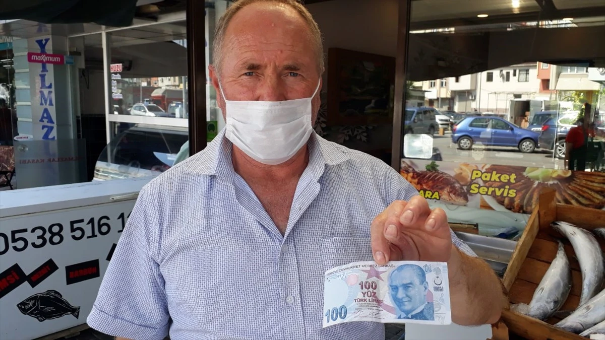 İlçede balıkçılık yapan Tuncay Yazgan, elindeki paralar arasında ön yüz sağ üst köşedeki 100 rakamının bir sıfırı eksik olan banknot gördüğünü söyledi.