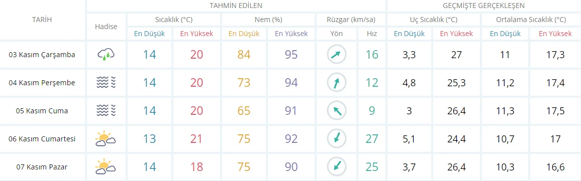 Sıcaklığın ülke genelinde 2 ila 4 derece artacağı tahmin edilirken rüzgarın ise genellikle güneyli, Doğu Akdeniz ile Güneydoğu Anadolu'da kuzeydoğudan hafif, ara sıra orta kuvvette eseceği tahmin ediliyor.