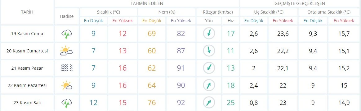 İstanbul'da önümüzdeki 5 gün boyunca kaydedilmesi beklenen sıcaklıkı, nem ve rüzgar