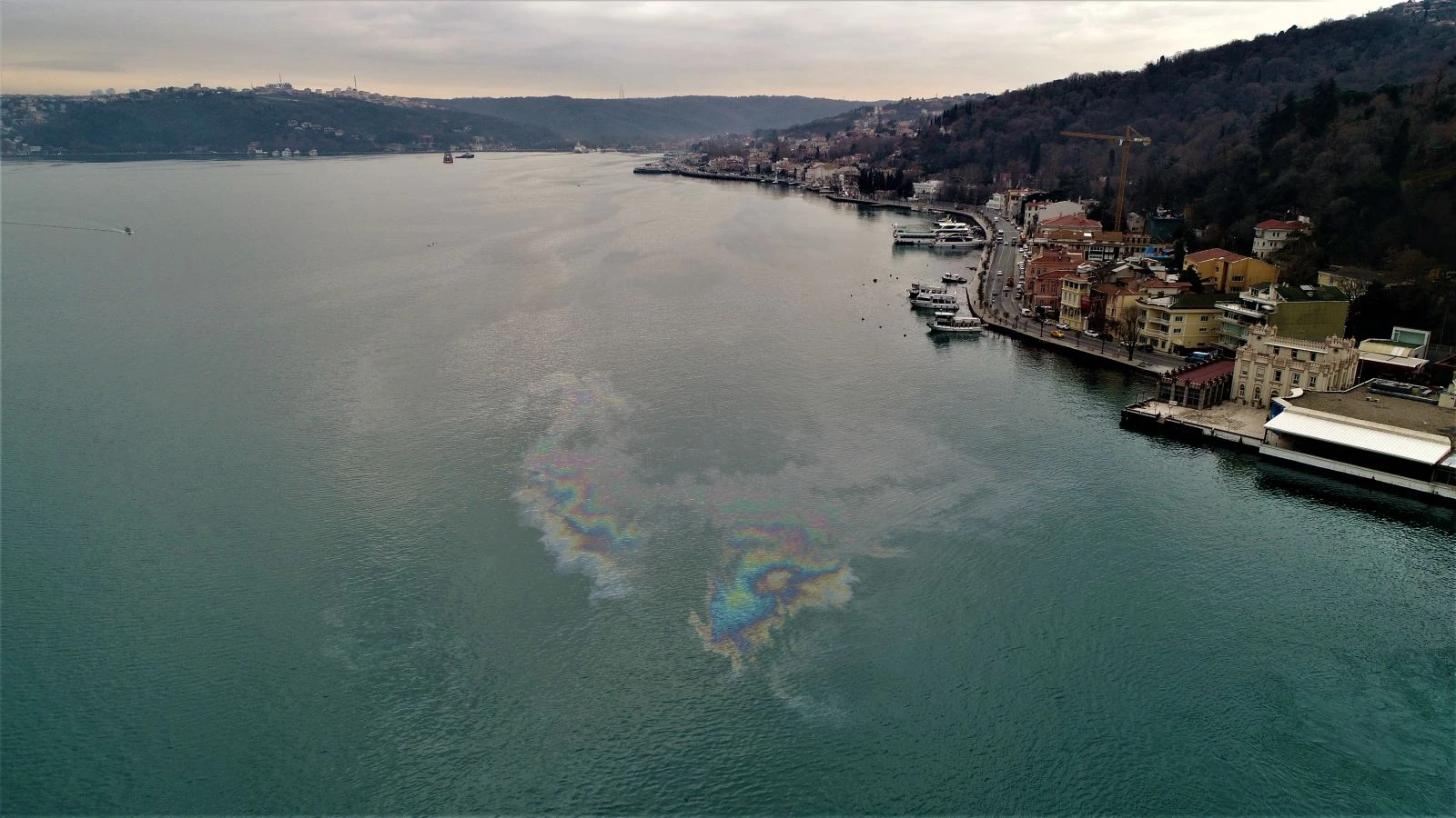 Gemi ve teknelerden denize bırakılan sintine atıkların yüzeyde oluşturduğu yağ tabakası boğazda kirli bir görüntü oluşturdu.