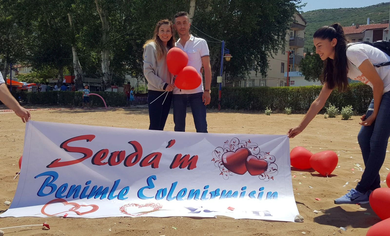 Havada yamaç paraşütü heyecanı yaşayan kız arkadaşıyla telefonla görüşen Yasin Türk, bir an önce yere inmesini istedi. Dakikalar sonra yamaç paraşütü zemine inerken yerdeki hazırlıkları gören genç kız yaşadığı sürpriz karşısında şok oldu. Patlayan konfetiler eşliğinde Yasin’in evlilik teklifini kabul eden Sevda’ya erkek arkadaşı yüzük hediye etti.