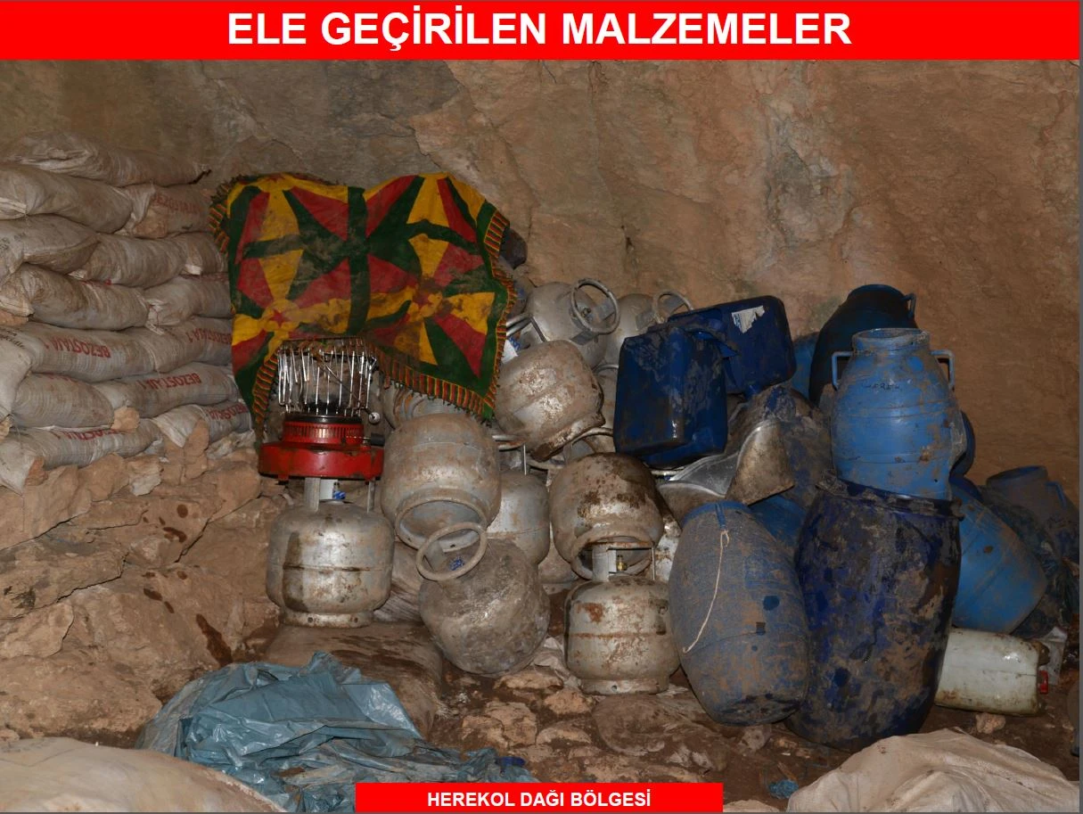 "Operasyon bölgesinde şu ana kadar (Yazlıca Dağı- Herekol) PKK'lı teröristler tarafından kullanılan 38 mağara tespit edilmiştir. Bu mağaraların 3'ünde bölücü terör örgütü mensuplarının kış üslenmesinde kullanıldığı değerlendirilmektedir. Mağaralarda arama ve tarama faaliyetleri emniyetli bir şekilde devam etmektedir. Tespit edilen mağaralarda yapılan aramalarda ele geçirilen mühimmat ve malzemeler ise, 1 adet PKMS (Bixi) makineli tüfeği, 6 adet AK-47 Kaleşnikof piyade tüfeği 750 adet Bixi mühimmatı 685 adet Kaleşnikof mühimmatı, 15 adet el bombası, 345 adet büyük tüp, 48 adet küçük tüp, 10 el yapımı patlayıcı düzeneği ve el yapımı patlayıcı yapımında kullanılan malzeme, 35 adet Kaleşnikof şarjörü, 18 varil mazot, 2 adet Jeneratör, 1 adet sabit merkez telsizi, 345 adet büyük pil, 4 adet hilti, 197 karton sigara, örgütsel içerikli doküman, büyük bir miktarda yiyecek ve yaşam malzemesi ele geçirilmiştir. Ele geçirilen mühimmat ve yaşam malzemeleri olay mahallinde imha edilmiştir. Bölgede geniş çaplı operasyon devam etmektedir."