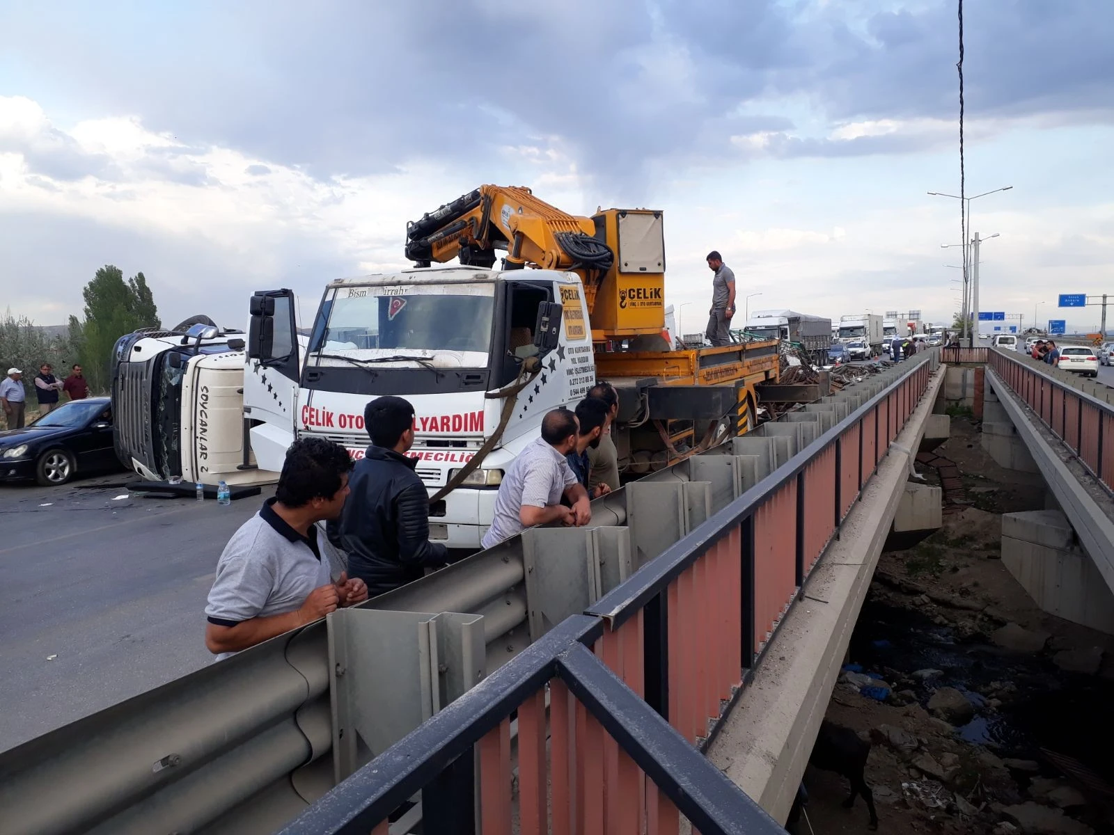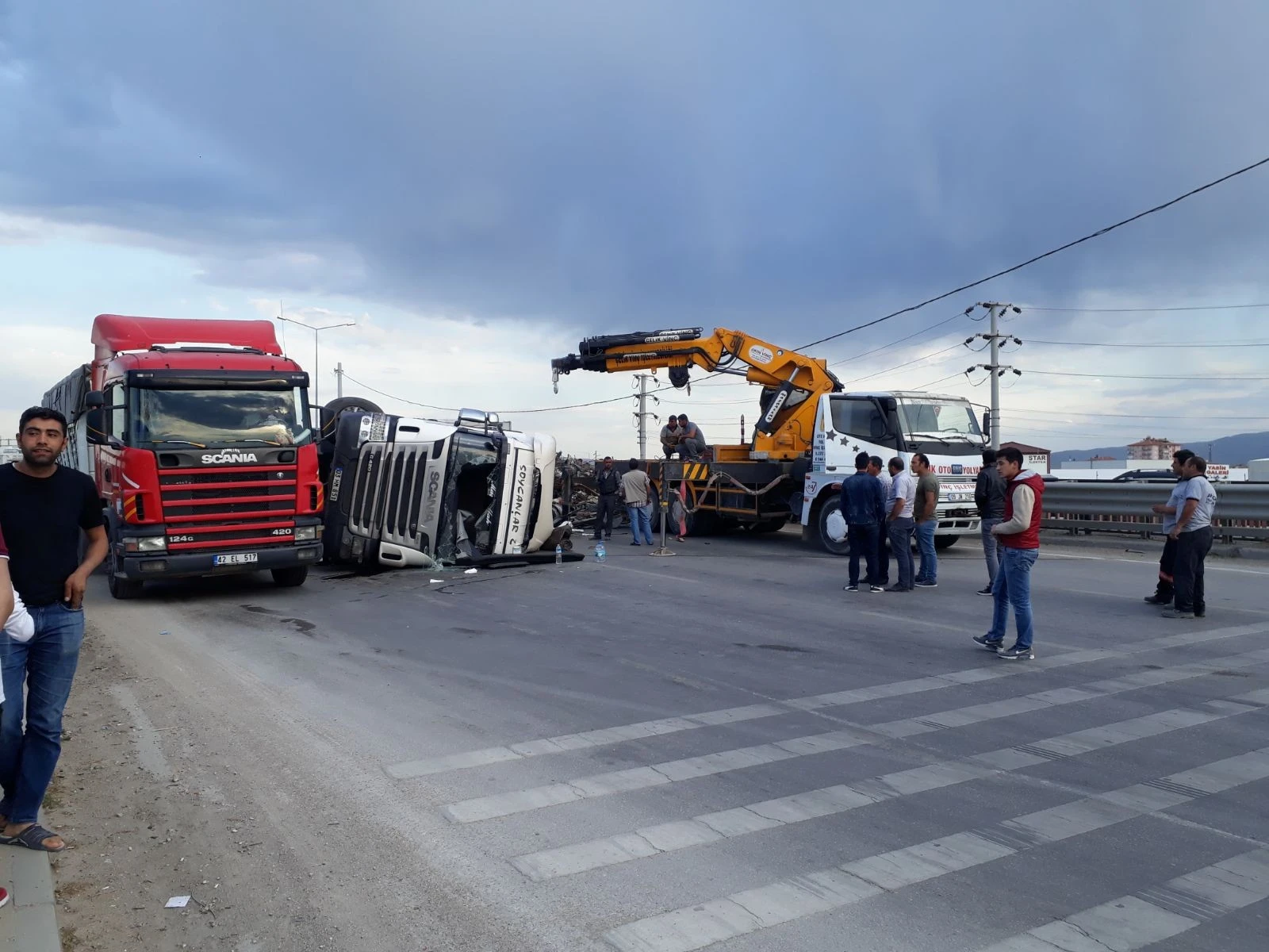 Kaza, Afyonkarahisar çevre yolu Ankara Köprülü Kavşak’ta meydana geldi. Akşam saatlerinde Ankara istikametinden Afyonkarahisar Organize Sanayi Bölgesi İstikametine seyir eden Yusuf Soycan (37) idaresindeki 03 HM 851 plakalı hurda yüklü tır, köprülü kavşağa geldiği sırada virajı alamayarak devrildi. Kaza esnasından tırın yakınında herhangi bir aracın bulunmaması faciayı önlerken tır sürücüsü Yusuf Soycan yaralandı. Yaralı olay yerine gelen ambulansla Afyonkarahisar Devlet Hastanesi’ne kaldırılarak tedavi altına alındı.