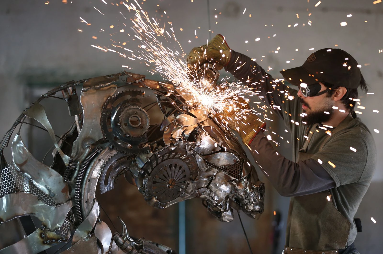 Eskişehir'in merkez Tepebaşı ilçesine bağlı Yukarısöğütönü Mahallesi'ndeki atölyede hurda malzemelerden metal heykeller yapan Özkan, sosyal paylaşım siteleri aracılığıyla eserlerini paylaşmaya başladı.