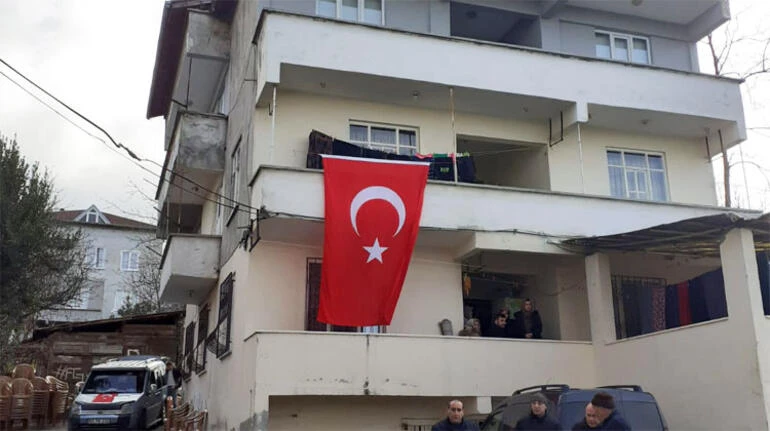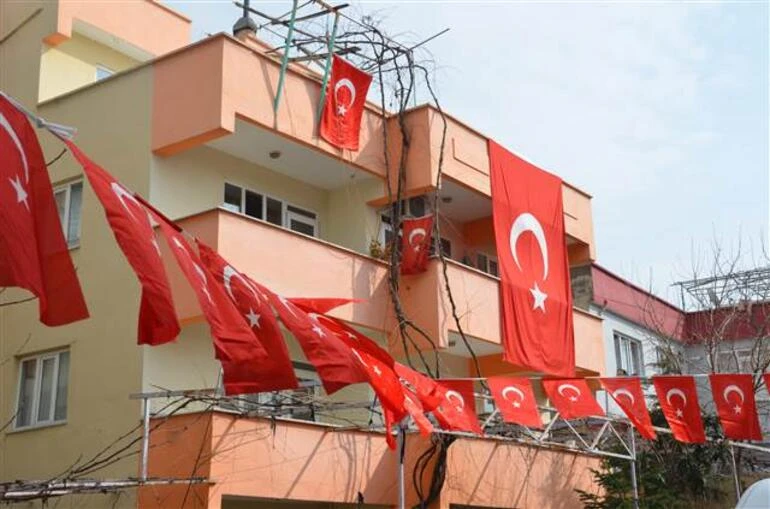 Şehit ateşi düşen eve Türk bayrağı asıldı