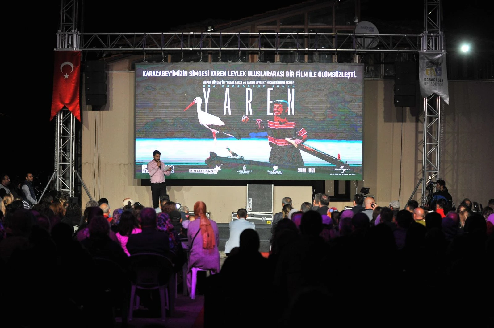 Açılış konuşmaları sonrası Karacabey Belediye Başkanı Ali Özkan, Adem Yılmaz’a plaket takdim ederken, daha sonra belgesel ilk kez izleyicilerin beğenisine sunuldu. Köy halkının da büyük ilgi ile takip ettiği belgesel ayakta alkışlandı. Belgeselin tamamen doğal olduğunu belirten Başkan Ali Özkan, “Eskikaraağaç Leylek Köyü, önem verdiğimiz yerleşim alanlarımızdan bir tanesi. Tanınırlığı her yıl artıyor. Türkiye’deki Avrupa Leylek Ağı’na üye olan tek yerleşim birimi. Bunun dünyaya açılacak olması bizi ayrıca mutlu ediyor. Çok başarılı bir çalışma ile karşılaştım bu akşam. Bu köy, leyleklerle özdeşleşmiş bir köy. Kendi hayatlarının filme aktarıldığı bir ortamda herkes bu konuda heyecanlandı ve keyifle bu faaliyetin içerisinde oldu. Tamamen doğal akışında bir senaryo” dedi.