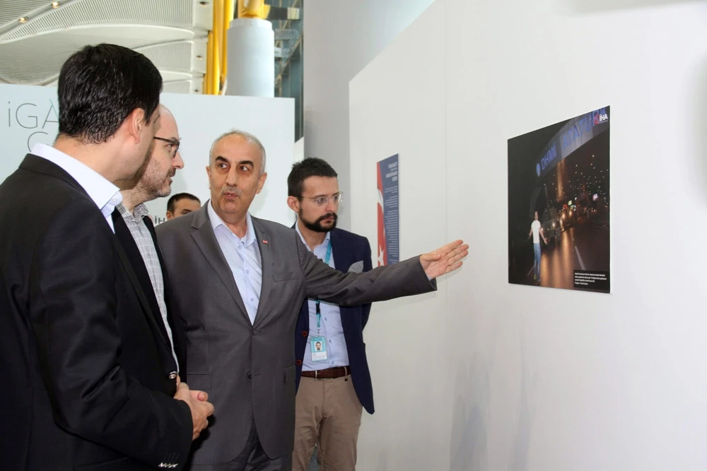 Kurdele kesim töreninin ardından davetliler sergide yer alan fotoğrafları yakından inceledi. İGA CEO’su Kadri Samsunlu’ya kalkışma sırasında çekilen önemli fotoğrafların hikayelerini anlatan İhlas Haber Ajansı Genel Müdürü Hamit Arvas, kalkışma sırasında halkın yanı sıra özel medya kuruluşlarının aldıkları sorumluluğa dikkat çekerek, “Özel televizyonlar gerçek manada bir mücadele verdi. Ondan sonra da zaten her şey çözüldü” hatırlatmasında bulundu. İhlas Haber Ajansı’nın 15 Temmuz Şehitler Köprüsü üzerindeki darbecilerin teslim olma görüntülerini canlı olarak dünya kamuoyuna verdiklerini ve İHA tarafından özel olarak paylaşılan bu görüntülerin ardından darbecilerin rehineleri bırakarak kaçmaya karar verdiklerini kaydetti.
