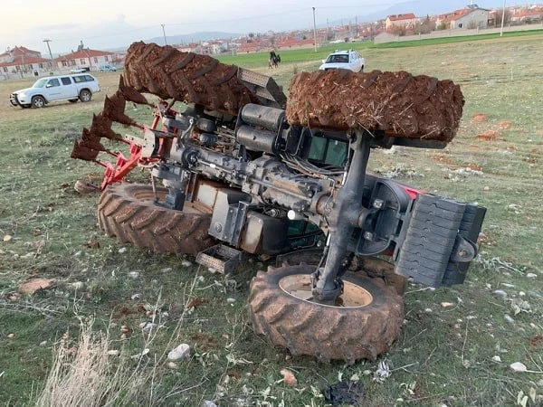 Alınan bilgiye göre, Eyüp Ö. (23) ve Hüseyin Ö. (22) kardeşler traktörle ilçenin Doğruyol mevkisinde bulunan tarlalarını sürmeye gitti. Eyüp Ö.’nün kullandığı 70 FU 024 plakalı traktör, manevra yaptığı esnada sürücünün direksiyon hakimiyetini kaybetmesi sonucu devrildi.