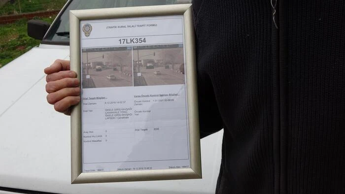 Biga ilçesinde ikamet eden ve önceki gün Lapseki’de 17 LK 354 plakalı otomobiliyle yanlışlıkla kırmızı ışıkta geçen 75 yaşındaki Ramazan Koç, hayatında ilk kez trafik cezası ödemek zorunda kaldı. Olaydan yaklaşık 2 hafta sonra kendisine konuyla ilgili tebligat yapılan Koç, 286 liralık cezasını ödedi. Hayatında ilk kez böyle bir durumla karşılaşan tecrübeli sürücü, "trafik kural ihlali tespit formunu" çerçeveletti. 1974’te ehliyet alan ve yaklaşık 46 senedir otomobil kullanan Ramazan Koç, “Trafik cezasını çerçeveletme fikri benim aklıma geldi. Hatıra olarak kalsın istedim” ifadelerini kullandı.