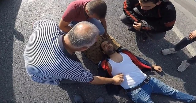 Kazanın şokuyla yerde kalan yaralı sürücünün yanına ilk olarak çarptığı tır şoförü geldi. Daha sonra diğer vatandaşlarda suyla yüzünü yıkadı. Yaralının başının asfalta değdiğini fark eden başka bir motosiklet sürücüsü ise tır şoföründen altına koymak için eşya istedi. Koşarak aracına giden tır şoförü paspas getirerek yaralının başının altına koydu. O esnada yaralının yüzünü yıkayan vatandaşın, yaralının elini bir an olsun bırakmaması “insanlık ölmemiş” dedirtti. Olayın ardından bir süre sonra olay yerine gelen sağlık ekipleri, yaralı sürücüyü yaptıkları ilk müdahalesinin ardından ambulansla hastaneye kaldırarak tedavi altına aldı.
