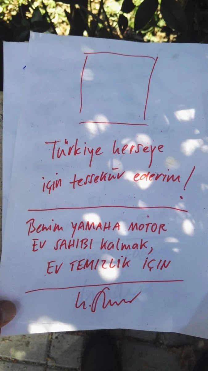 Evde yapılan aramalarda ise, “Benim anne, baba ve kardeşler öldü. Başka akraba yok, belki siz beni yabancılar mezarlığına koymak istersiniz ama gerek yok. Benim et çöpe atıyorsunuz en güzel! Teşekkür ederim” ile “Türkiye her şey için teşekkür ederim. Benim Yamaha motosikleti temizlik için ev sahibine bırakıyorum” yazılı 2 not bulundu.