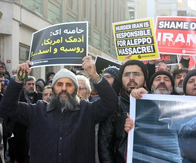 Suriye'de Türkiye ve Rusya'nın girişimiyle ilan edilen ateşkesin ihlal edilmesi ve Halep'teki sivillerin açılacak koridor üzerinden tahliye edilmesinin engellemesine tepkiler sürüyor. Cevheri Kasım Paşa Camii önünden İran'ın İstanbul Başkonsolosluğuna yürüyen çok sayıda vatandaş da, İran'ın Halep tutumuna tepki gösterdi. Ellerinde "Yavuz Sultan Selim Atamızın yolundayız" ve "İran Yalan, Nifak, Katliam" pankartlarıyla konsolosluğa yürüyen yaklaşık 250 kişilik grup için polisin geniş güvenlik önlemi aldı. Olası bir olumsuzluğa karşı İran Konsolosluğu önünde önlem alan polis ekipleri konsolosluğunun önünü TOMA'yla kapattı. Kalabalığa tepki gösteren bir kişiyle vatandaşlar arasında arbede yaşanırken polis tepki gösteren vatandaşı gözaltına aldı. Protesto, polisin uyarılarının ardından sona erdi.