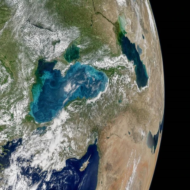 Fotoğrafın altındaki yorumda Karadeniz'deki turkuaz rengin, planktonlar nedeniyle oluştuğu belirtildi.
