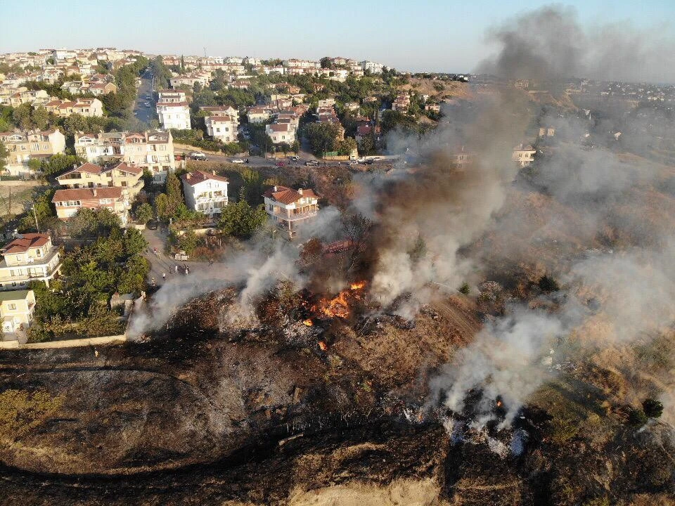 Kısa sürede büyüyen yangın bütün alanı kaplarken, vatandaşlar durumu itfaiye ve polis ekiplerine bildirdi.